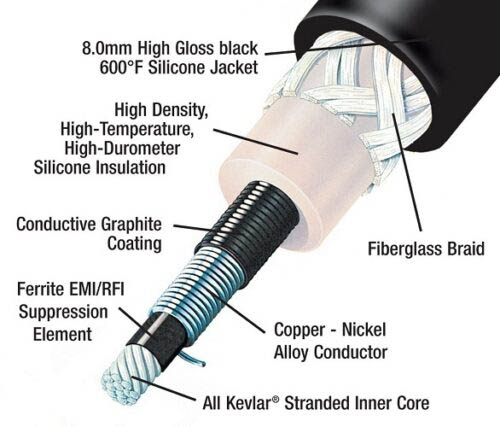 وایر تقویتی: وایر های مقاومت صفری که معولا در رنگ های قرمز و نارنجی در بازار یافت میشوند. طی دو تا سه سال اخیر استفاده از این وایر ها به شدت افزایش پیدا کرده و همچنین تولیدکننده های بیشتری به تولید این محصول روی اورده اند. اما نکته مهم : این وایرها به شدت بی کیفیت بوده و استفاده از آن ها به هیچ عنوان توصیه نمیشود. اما چرا؟ این وایرها برعکس وایرهای استاندارد (که از پیچ خوردن یک رشته سیم به دور یه مغزی نارسانا تشکیل میشوند) فقط یک سیم مسی چند رشته هستند مانند سیم برق های قوی. به شکل های زیر دقت کنید. در سمت چپ برش خورده وایر تقویتی و در سمت راست برش خورده وایر استاندارد را مشاهده میکنید.